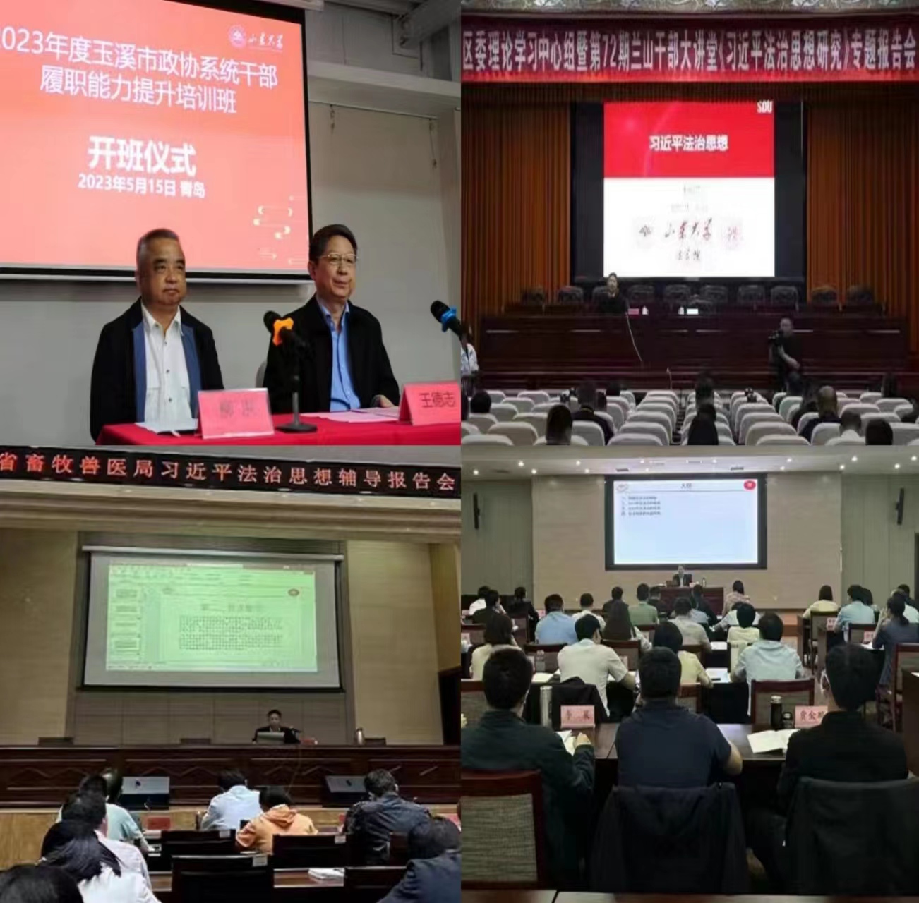 习近平法治思想研究中心自去年9月成立以来,在谢鹏程教授的带领下在多个方面深入开展研究工作,并承担了全校本硕阶段《习近平法治思想概论》的全部教学工作以及对外的主要宣讲工作。主题教育活动开展以来,中心多位研究员在校内外进行习近平法治思想宣讲。如5月13日,谢鹏程教授在太阳集团tyc4633主题教育读书班第三次集中学习上做辅导报告;王德志教授5月16日为玉溪市政协系统干部做了题为《党的二十大报告精神解读:发展全过程人民民主,保障人民当家作主》的报告,5月23日、28日,5月30日三次为党政机关干部做习近平法治思想和立法辅导报告。中心目前已经形成了从法理学、宪法学、人权法学、数据法学以及部门法学等多个视角对习近平法治思想进行研究的研究特色,并取得了丰硕成果。