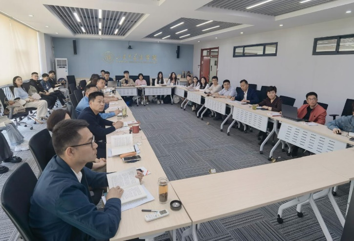 本次会议在青岛校区华岗苑北楼三楼中厅会议室和济南校区逸夫楼112会议室同步进行,学院党委委员、领导班子成员及学院党支部书记等参加会议。