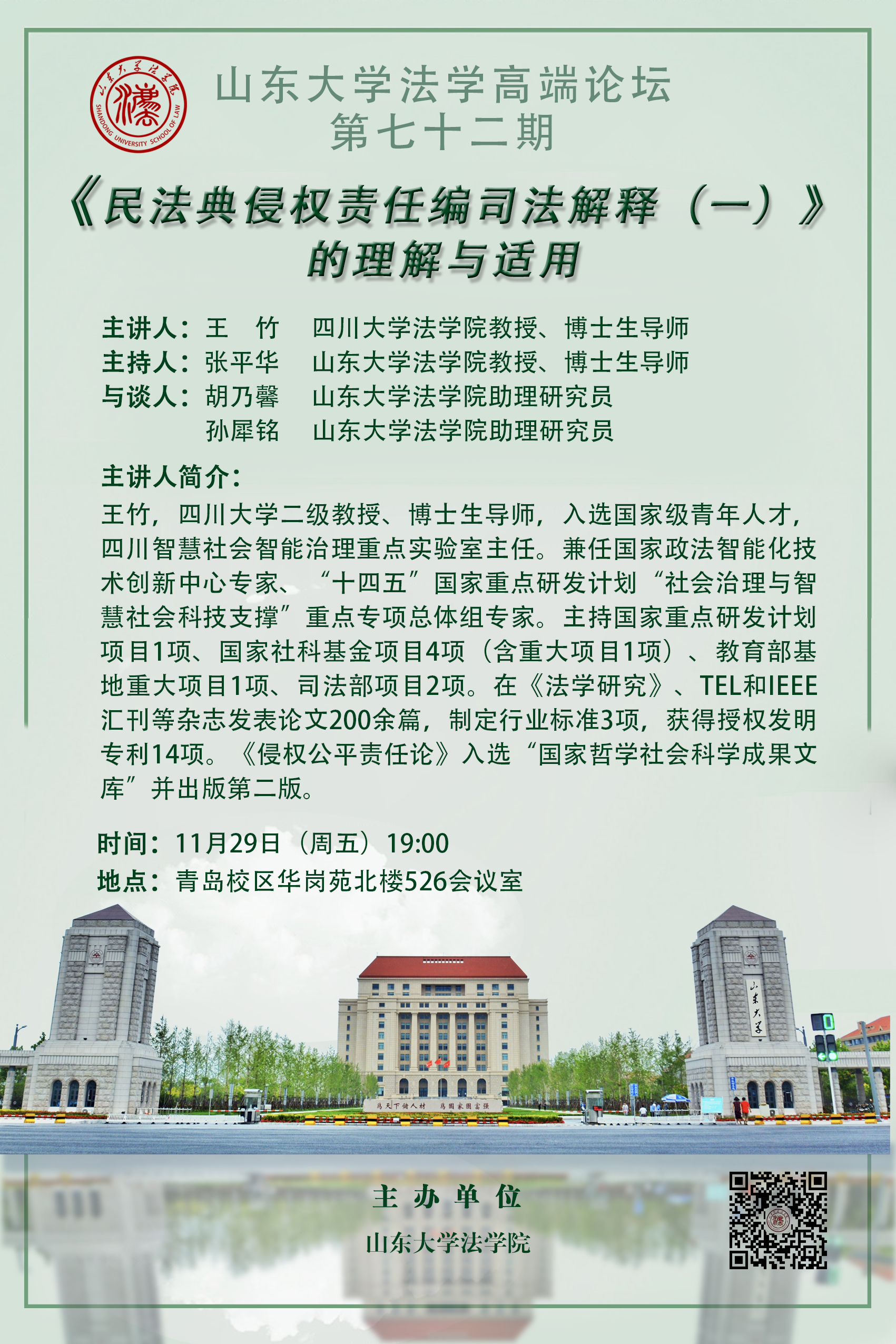 讲座预告 | 太阳集团tyc4633法学高端论坛第七十二期:《民法典侵权责任编司法解释(一)》的理解与适用
