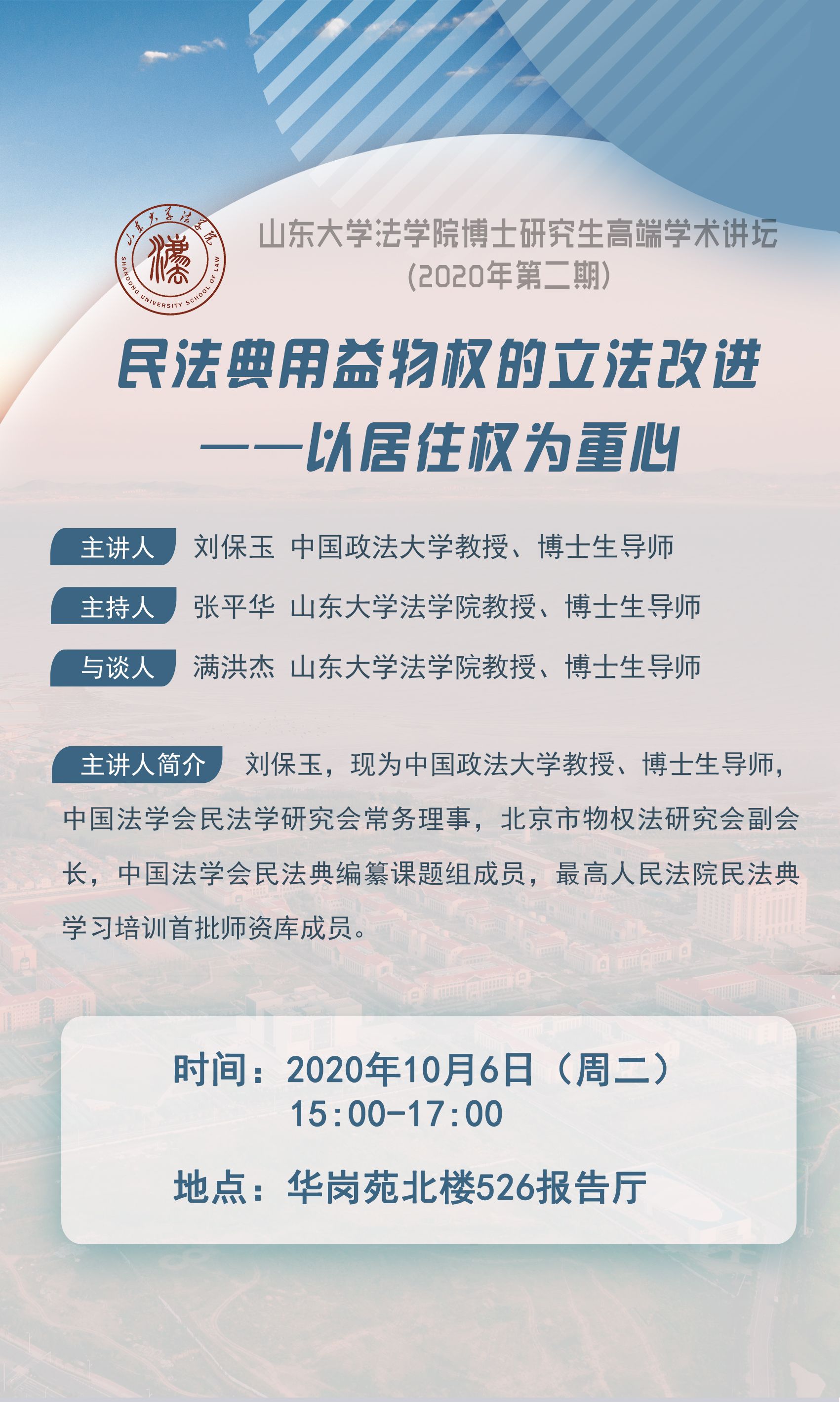 太阳集团tyc4633博士研究生高端学术讲坛(2020年第二期):民法典用益物权的立法改进——以居住权为重心