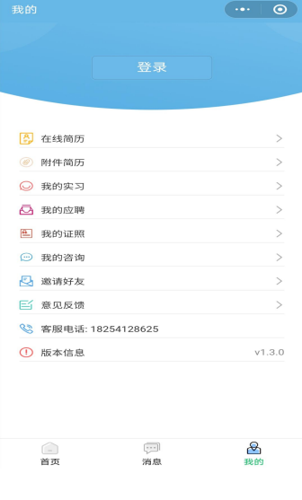 完善简历后可通过首页查看岗位实习与就业信息,并根据自身情况进行简历投递。